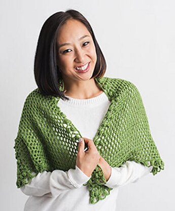 Adella is a beautiful half circle shawl that is worked from top down. In fact, it is more of a three-quarter shawl which will stay on the shoulder because of the shape. To create an eye-pleasing look, popcorns have been added at points of increases every other row until shawl is at the appropriate length. The bottom edge is a row of popcorns and to complete the look.