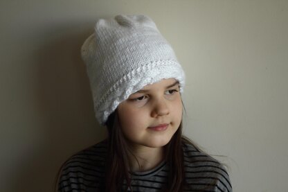 This is a slightly slouchy beanie featuring a cable brim. It is very easy to make one, yet it has such a unique look. You can try making the cable brim part in a different color for an even more interesting appearance.
