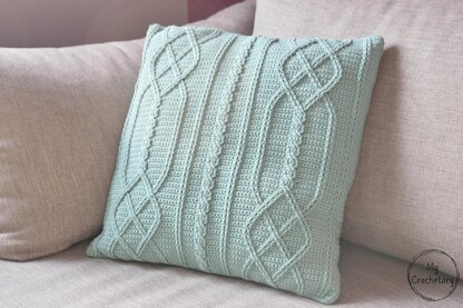 I was inspired by the look of knitted cables seen in many sweaters or home items. Crochet cables are used to achieve this beautiful intertwined design and the pattern of Cable Diamond Pillow is giving a modern twist to this traditional cable texture. It turned out so stunning and contemporary.