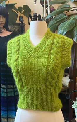 The vest is knitted in Rib, Cable and stockinette stitches. It is a bit of counting until you get used with the pattern.