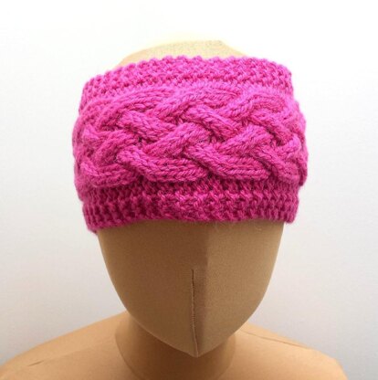This knitting pattern is for a cable headband knitted in worsted or aran weight yarn.