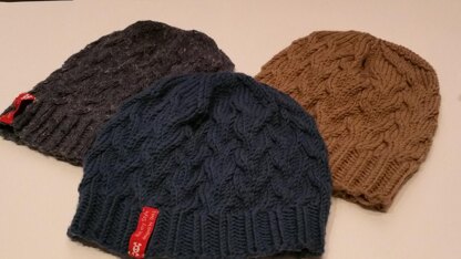 Eine simple Mütze glatt rechts in Runden gestrickt mit einem einfachen Zopfrapport, auch für Anfänger geeignet. Das Bündchen ist in verschränkten Maschen gearbeitet.