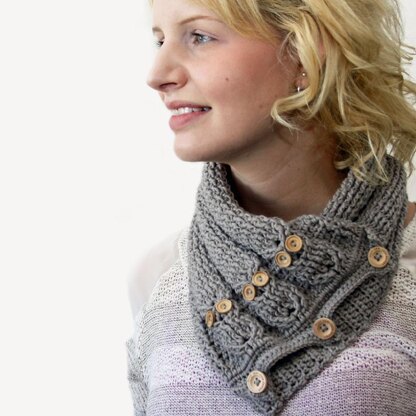 Learn to crochet these adorable cabled owls and enjoy the warmth of a scarf without the added bulk. This neck warmer naturally curls making it both warm and comfortable, and the three front closure buttons, plus one hidden button, keep it nice and secure.