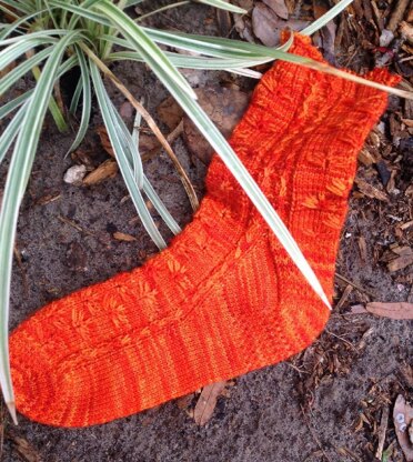 The Cactus Flower Toe Up Sock has a fun slip stitch pattern resembling flowers placed on instep and around the leg. A zig-zag slip stitch cable runs up the sides of the instep and leg. Toe, heel, and heel flap are knit in Eye of Partridge pattern. Directions include options for tapered or rounded toe, generic or calculated foot length, and stretchy or picot bind off. Heel turn incorporates Alice Yu's shadow stitch technique for making twin stitches. Tutorials for techniques are included.
