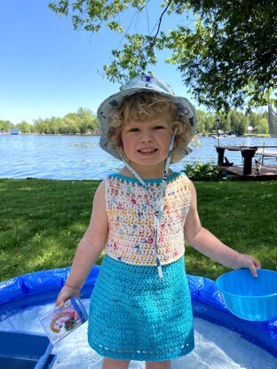 This sweet little dress was designed for my girl. I received a shipment of yarn from WeCrochet to use for my next design and was pleasantly surprised to find some Brava and new Brava Speckle in a variety of coordinating colours to try. My daughter was so excited about the bright and fun colourways, so I asked her what they should become. She decided they should be a dress and I don’t think she could be more right! This yarn is perfectly suited for kids’ garments - soft, washable, and durable. The design is simple and ready for play. Layering it up with tights or leggings, a t-shirt, or a denim jacket will carry us through from spring to fall. The worsted weight makes this a quick project that can be worked up again year after year, size after size, as your little one grows not-so-little. On the bodice, try adding an extra chain to the turning chain of each row for a slightly scalloped edge detail along the armholes.