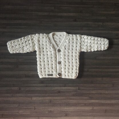 CALEB CROCHET BABY CARDIGAN PATTERN PDF - A cute wee cabled all over v-neck baby cardigan in 3 sizes from (0 - 3) months to 2 years. Made seamless bottom up so no sewing of side seams. Unisex | Gender Neutral - Baby boy or Baby girl.