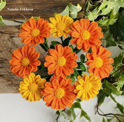 To create this pattern, I was inspired by the bright orange calendula flower. But if you change the color of the yarn, you can make a daisy or a chrysanthemum.