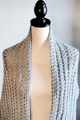This wrap is made by holding two strands of yarn together, which makes it thick and comfy, but not heavy. You're going to need anywhere between 1000-1500 yards.