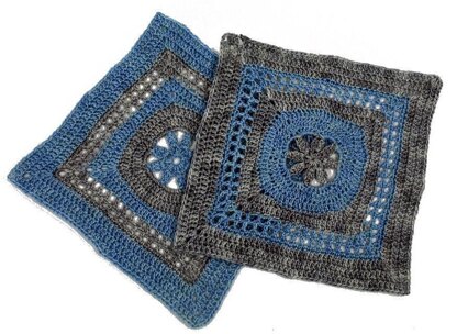 This 8X8 square features a lovely flower center and is worked up in fingering weight yarn. It has a delicate look to it, which lends itself well to shawls, wraps, or a light throw. Use your imagination for color combinations to create your own unique look.