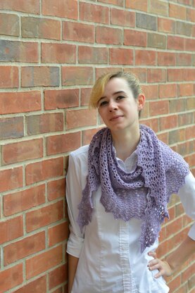 Camhanaich is a Scottish word meaning early morning twilight. This Shawlette is a lovely little shoulder shawl that looks beautifully worn as a scarf/cowl. Yes, it has beads! Just a nice bit of bling! Finished Measurements: Unblocked 48” wide across top x 10” deep; Blocked 68” wide across top x 15 1/2” deep