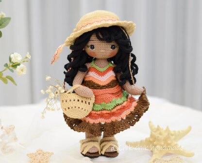 * Featured: - CAMILA doll finished approximately 11.8 inch ~ 30cm tall - suitable for decoration or baby toy. - The tutorial/pattern in English (using US crochet terms & convention). - CAMILA printable PDF file with 35 pages and 113 images to make it easy. - CAMILA’s dress, sandals, hat, bag are removalable. ** Difficulty: Intermediate crochet skill *** Suggested Materials & Tools: - YarnArt Jeans & Gazzal Baby Cotton threads and crochet hook size 2.3mm - Black safety eyes: 10mm - Polyester fiberfill for stuffing: 200gram - Sewing needle - Scissors - Buttons - Fabric glue or glue gun