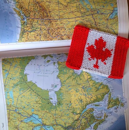 Easy crochet pattern of Canadian flag, with chart. PDF pattern with clear instructions to make this flag and use as mug rug, applique on bag/rucksack or to make a bunting. You can make it if you know single crochet stitch, crocheting in rows and changing colors (Fair Isle technique).