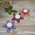 Yarn:Alize Bella – 50g/180m (1.76 oz/197 yds), 100% cotton white (color 6309) – 0.1 ball blue (color 4660) – 0.1 ball red (color 15) – 0.1 ball or any fingering weight yarn.