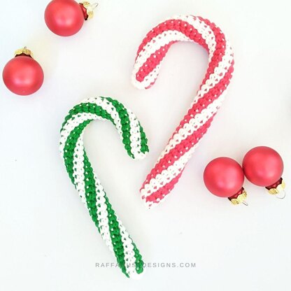 Crochet these fun Candy Cane Amigurumi Ornaments for your Christmas tree and Holiday home décor!