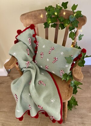 The pattern for the blanket and cushion is perfect for all crochet abilities as the only two stitches used are dc (UK terms) and chain. The blanket is worked in rows of dc and the candy canes, rather than being worked in rounds, are simply small crocheted rectangles in dc, which are then rolled up and stitched in to place, with the stripe being created by wrapping a length of chain stitch around the cane. The candy canes and snowflakes are then stitched in to place on to the finished blanket. It really is as simple as that !