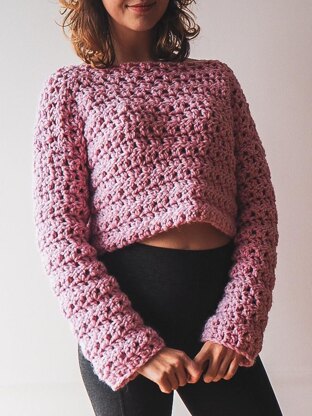 A cute and easy beginner jumper pattern that works up quickly in a super chunky yarn! A great choice if it's your first go at making a top. One of those instant gratification projects :D The end result is a cute cropped sweater that goes well with a high waisted skirt or jeans for a daytime look – or with leggings and a coffee for more of an athleisure vibe.
