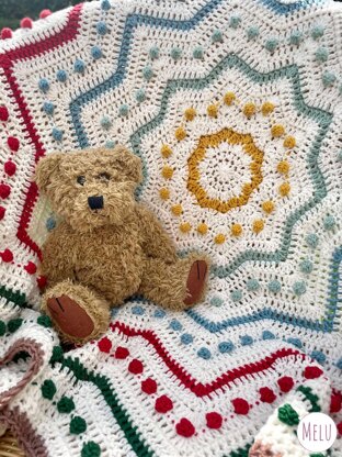 Introducing my delightful new Candy Dot Star crochet blanket pattern! It's designed with beginners in mind, featuring easy-to-master single crochet (sc), double crochet (dc), and adorable bobble stitches, all worked in the round.