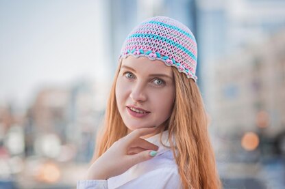 Cute crochet hat pattern "Candy lady" beanie. Crochet pattern for adult female beanie (≈21.5 inches (55 cm) circumference and 6 inches (15 cm) depth from top to brim). One size. Easy to change a depth. 3 colors was used to make this crochet fitted hat.