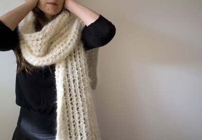 The Candyfloss Scarf & Cowl can be made with a bulky mohair or a lighter-weight mohair held double. I’ve knit this up in both a mohair and an alpaca-silk blend, and found both options worked very well. With the open, lacy stitch paired with very lightweight wool, this scarf or cowl practically floats around your neck, while still offering coziness and warmth. Check out the pattern for the Candyfloss Hat if you’re looking to make a matching winter set!