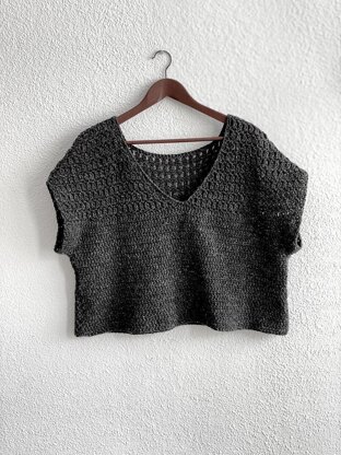 Construction Top is worked flat in 2 pieces, bottom up, then seamed at shoulder and sides.