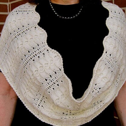 This is a pattern for a lacy shoulder cowl. There are two lengths contained within the pattern. The longer finished cowl measures 58 X 10 1/2 inches, and the shorter one measures 46 X 10 1/2 inches (which is the one seen in the pictures), so you have your choice of how long you would like your cowl to be.