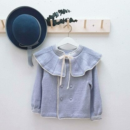 Other materials: tapestry needle, crochet hook, stitch marker, 10 buttons of diameter 10(10)10(12)12(12)12(12) mm, 1m of ribbon.