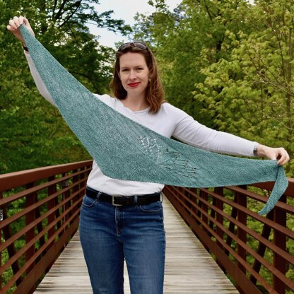 | One size only: | As this shawl is highly adaptable- the finished dimensions will vary with yardage. Sample used 336 yards/308 m sport yarn and has 53"/135 cm wingspan and 10.75"/27 cm depth. |