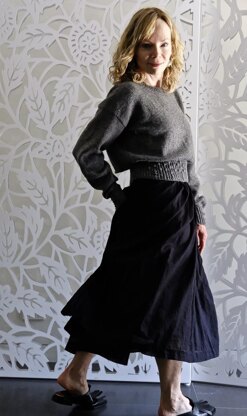 The back and front are joined to work the body in the round to the hem. The body can be knitted with a cropped cape like shape for the back, or straight for a more conventional look.