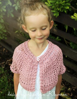 This pretty, loose-fitting cardigan is made to measure according to the standard size chart in the pattern. Design features a lacy, openwork fabric, ribbed edgings, pleated neckline and a single button closure.