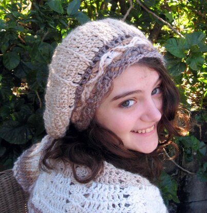 This is a pretty hat with the main design feature being the band. You will need to be familiar (or willing to learn) front and back post stitches and clusters to create this hat successfully.