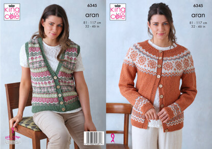 Cardigan and Waistcoat Top knitted in King Cole Forest Aran - P6345 - Leaflet