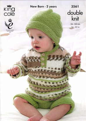 Cardigan, Sweater, Shorts and Hat in King Cole Comfort Prints DK and Comfort Baby DK - 3561 ist eine Anleitung zum Knitting von King Cole, die als Broschüre in den folgenden Sprachen verfügbar ist: Englisch. Besonders geeignet ist sie für alle, deren Können bei einzustufen ist. Probiere sie noch heute aus und kreiere dein nächstes Meisterwerk!