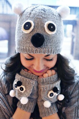Care to Cuddle? Koala and Owl Animal Hat and Fingerless Mitten Set