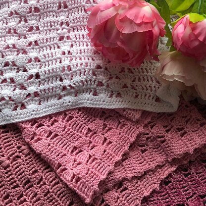 Beginner spring crochet wrap pattern featuring fans and picot stitch