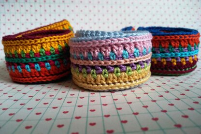 “Carnival” includes pattern for 2 adult sizes: M-size headband fits head ≈22” circumference. L-size headband fits head ≈24” circumference. Easy to change the size (for baby or toddler): just make a shorter starting chain. Stitch count of starting chain must be a multiple of 2.
