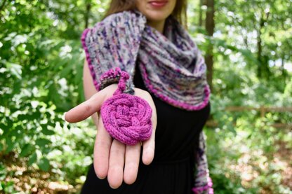 Like fairly mindless knitting for big impact? The Carrick Bend Shawl lets you accessorize your accessory with a little Celtic flair. Starting with a small garter-stitch tab and growing with increases on the edges, the main body of the shawl grows into a classic crescent shape with just enough garter to keep you interested and emphasize your progress. It’s the perfect pattern to show off a crazy dye job, complimented with a pop-color picot bind-off. But the real star of the show is the shawl's closure, formed by tying a 4-stitch I-cord into a classic Carrick Bend mat Celtic knot. The knot is sewn onto one end of the shawl and has a hidden button on the back to fasten the shawl closed. Go for shawlette, shawl, or shlankette, as this pattern is easily adaptable to just about any yardage!