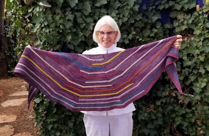 Carrington is a very simple shawl, with pretty splashes of color and garter stitch. This is a perfect way to use up smaller balls of special yarn. I used Squishy and Squishy Skeinettes sets from Anzula.