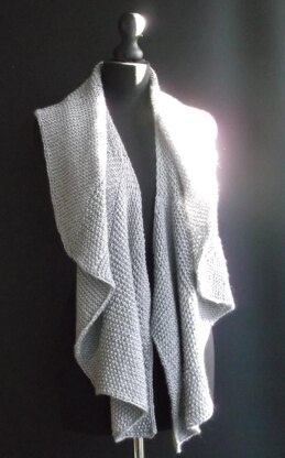 Cascade’s “Pacific” is used to knit this garment. Seed stitch panels and garter stitch short rows create a beautiful drape in this scarf. It can be worn in several ways. Open it out and wear as a shawl, or wrap it around your neck for a cosy scarf.