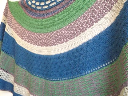 Use Cascade yarns Heritage to create this tapestry of stitch patterns and movement. Mostly slip stitch patterns, with some garter stitch short rows on the border. Choose four shades and cast on!