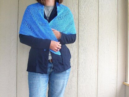 an all garter stitch half circle shawl using eyelets to create an increasing wave like pattern.