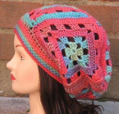 This pattern is for a fun, funky slouchy beanie constructed almost entirely out of granny squares! This hat updates the traditional granny square for a trendy, beautiful hippie chic look. The hat features a unique surface braid brim, and is sure to make a statement! The pattern comes with easy to follow step-by-step instructions and helpful, clear photos.