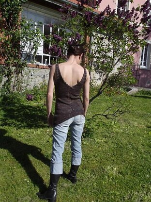 Finished Measurements: -Bust : 32 (34, 36, 38, 40, 42) inches; 81 (86, 91, 96, 101, 106) cm. -Armhole depth: 9.5 (10, 10.5, 11.5, 12, 13) inches; 24 (25, 27, 29, 31, 33) cm. -Length from underarm to hem: 12.5 (13, 14, 14.5, 15, 16) inches; 32 (33, 35, 37, 39, 41) cm. -Opening back (version 1): 9.5 (10, 10.5, 11.5, 12, 13) inches; 24 (25, 27, 29, 31, 33) cm. -Opening back (version 2): 6 (6.3, 7, 7.5, 7.9, 8.3) inches; 15 (16, 17, 18, 19, 20, 21) cm.