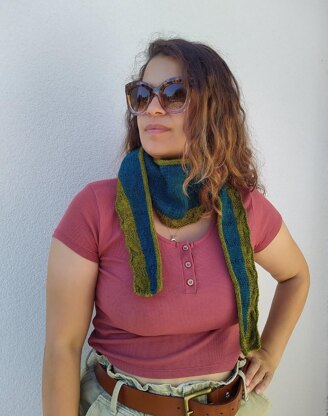 Casual Necks is a crescent shaped shawlette that features a simple left and right, six stitch cable at the bottom edge and an i- cord cast off. The cabled edge and i-cord cast off are worked in a contrast colour – however, a one colour option would work just as well, but be sure to factor in the yarn amounts.