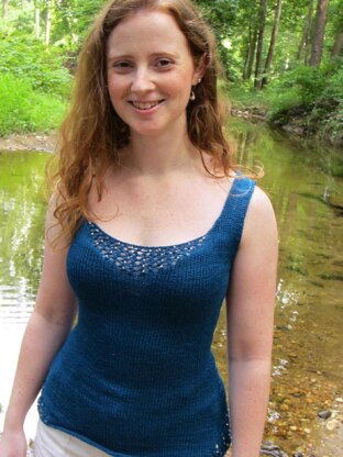 This light weight tank is perfect both for knitting and for wearing on a hot summer day. The luscious silk blend will feel just as good on your body as on your fingers. The beads give it just enough sparkle to be glamorous, and the fishnet sections create just enough intrigue. In deference to the heat of summer, the simple stockinette body guarantees the tank will practically fly off the needles. Instant gratification!
