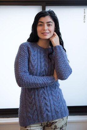 The Sleeves and Body of this pullover are worked separately from the bottom up to the underarm where they are joined and worked together for the Yoke. The Yoke is decreased along 4 raglan lines from the underarm to the neck. Stitches for the neckband are picked up and the underarm stitches are joined using a three-needle bind-off to finish.