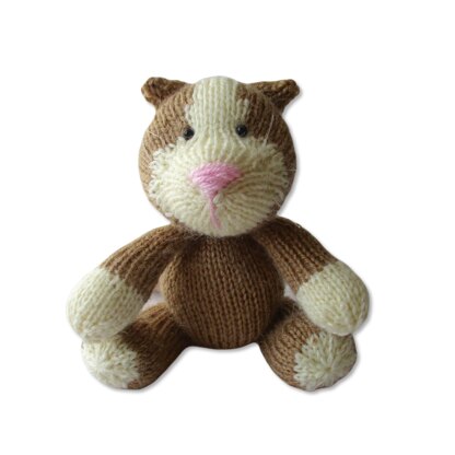 Cavendish is a sweet little kitten, knitted in soft and cuddly alpaca yarn. This pattern incorporates intarsia colour-work for the stripe on the cat’s head. Designed by Amanda Berry @fluffandfuzz, the cat is knitted in DK weight yarns on single pointed needles (not in the round). For confident beginners and above, other techniques used include casting on and off, knits, purls, increases and decreases, and seaming to finish.