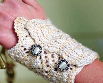 A great look this year is the casual fiber or fabric accessory like these knitted cuffs or wrist warmers (or bracelets). It is a great way to use up small amounts of a special yarn, even hand-spun. Cavendish is the lacy one. Put it on to accent a tanned wrist, or a pretty ankle.