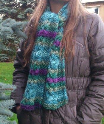 Making this warm and soft scarf is relatively easy if you have a little experience with cables. The pattern is easy to memorize and the row by row description guides you from the first stitch to the last one. The file also contains a chart and a close-up photo of the motive. You can complement your scarf with a matching beanie, also available in my pattern store.