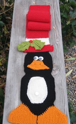 I love a scarf that puts a smile on someone’s face. The more little details I add the bigger the smile. I started with Pengy’s feet, knitting them side-to-side, and then picked up for his belly. His body is very easy with simple increases and decreasing. Add his hat and you are well on your way. Knitting his beak, tummy and holly leaves are details that go fast, and you will bond with Pengy as you put him together. Add a little stuffing to his belly and he comes alive.