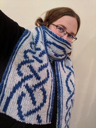 A simple scarf design that can be repeated to create a scarf that is as long as you want!